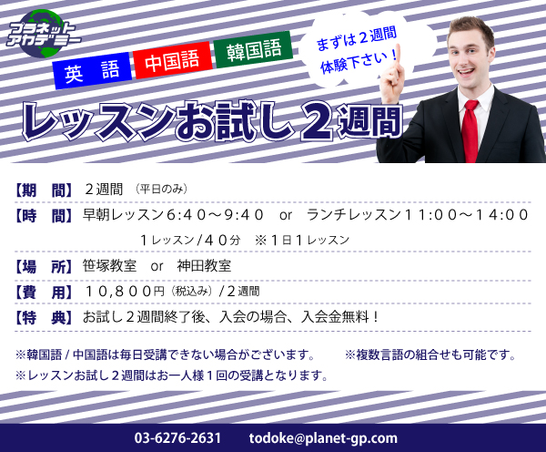 Copyright © 2025 英語・英会話教室の通学・オンライン授業!早朝・朝から授業受けられます。 | プラネットアカデミー All rights Reserved.